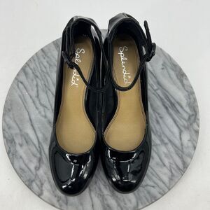 SPLENDID WOMENS 8 PUMPS BLACK PATENT LEATHER ANKLE STRAP MID BLOCK HEEL SHOES