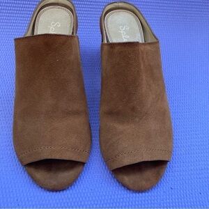 Splendid Women's 8.5 Danica Mule Sandal Open Toe Neutral Tan Suede Block Heel