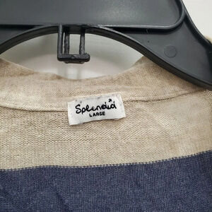 Splendid Women's Blue Beige Rugby Stripe Tie Front Light Cardigan USA Made Sz L