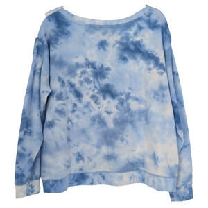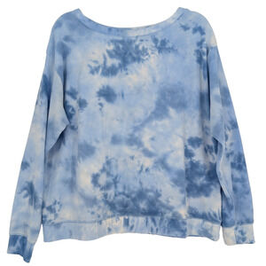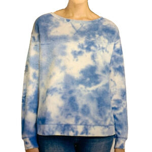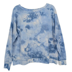 Splendid Womens Blue Tie Dye Crewneck Pullover Waffle Shirt Lounge Cozy Boho LRG