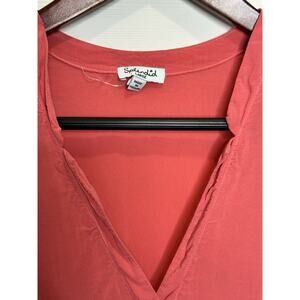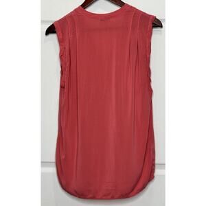Splendid Womens Coral V-Neck Sleeveless Blouse Solid Pleated Pullover Top Sz L