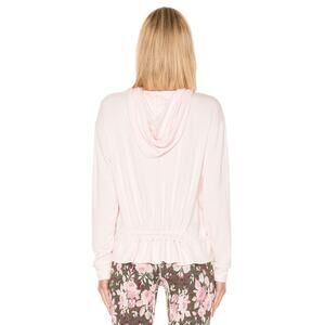 Splendid Women's Gathered Back Rose Embroidered Hoodie Sweatshirt Pink Large $64
