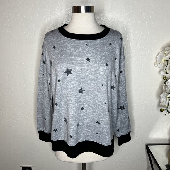Splendid Womens Grey Heather Star Sweatshirt Long Sleeve Size M