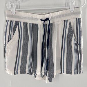 Splendid Women's Large Pull-On Shorts Drawstring Waist Stripe Black Blue White
