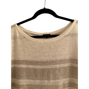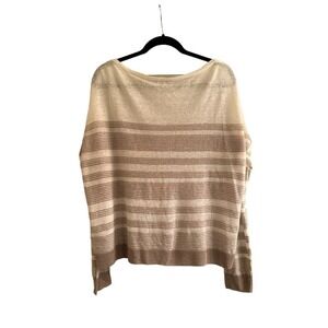 Splendid Women's Long Sleeve Linen Striped Pullover Sweater Size XL Beige White