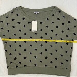 Splendid Womens Olive Green Cropped Thermal Top w/ Black Stars Print Size XS NEW