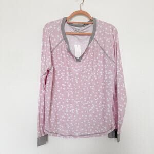 Splendid 2-piece pajama set includes long sleeve top with contrast trim and matching drawstring pants in a pink heart print. Size XL. New with tag.