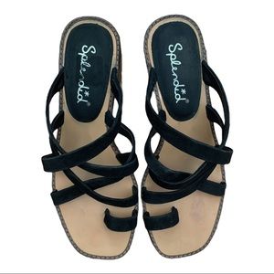 Splendid Women's Stevie Strappy Toe Loop Sandals Heels Suede Summer Black 8.5