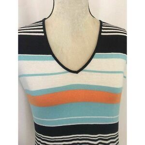 Splendid Womens White Blue Orange Striped V Neck Short Sleeve Top Rayon Xs