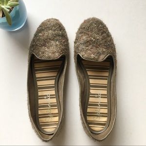 Comfy & cute multi - colored wool loafers • brownish/taupe color with flecks of color • we'll loved but still has some life in them • some stretch as I have wider feet but fits true to size