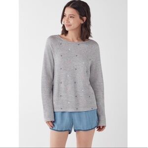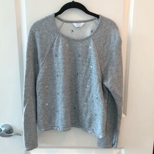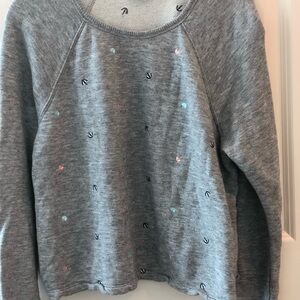 Sweatshirt grey with multicolored embroidered umbrellas.