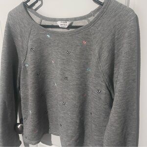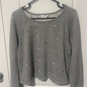 On trend sweatshirt, perfect for fall and winter! Light weight and super cute.