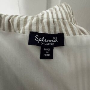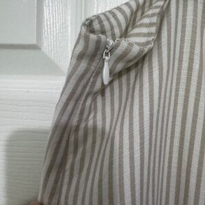 This skirt is lined with a part cotton lining. There is a zipper on the side with a partial elastic band in the back. The skirt is striped beige and cream. While there are no tags attached the skirt has not been worn.