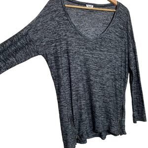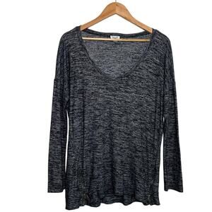 Splendid Zipper Sides Long Sleeve Heathered Relaxed Top Charcoal Grey Medium