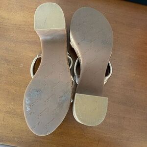 Splendid anthropologie heels strappy gold metallic Ted cork banded heels 8.5