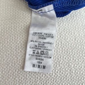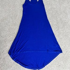 Pretty royal blue dress. Slight high low cut with v neckline. Very versatile dress. It’s only been worn twice. Sized up for postpartum and didn’t need to. No rips stains or tears. Smoke free pet free home.