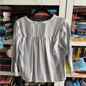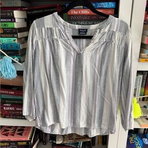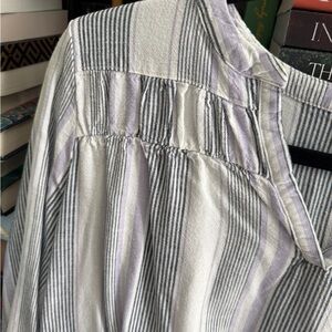 Splendid blue stripe linen blend popover blouse v-Neck Blouse shirt top