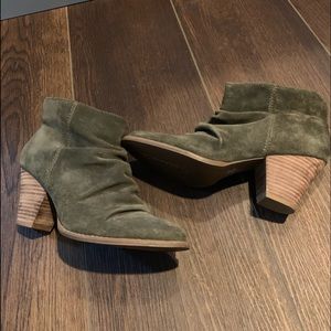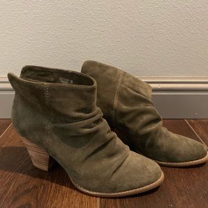 Splendid Rodeo Slouch Ankle booties. Almond toe. Topstitched detail. Pull-on. Approx 4”shaft height, 11.75” opening circumference, approx 3” stacked heel. Suede upper, manmade sole. Slate. Very little wear.