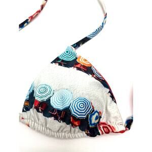 Splendid w/ Gray Malin Red Umbrella Reversible Triangle Swim Bikini Top Swim X SMALL NWT