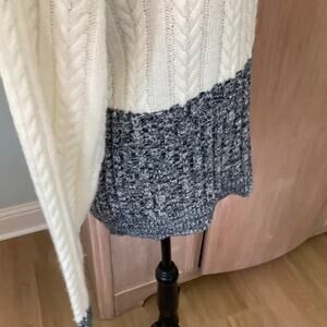 Splendid color block cotton turtleneck sweater ivory gray cable knit fisherman L