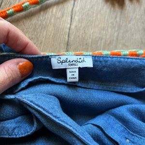 Splendid super soft denim tencel drawstring jumpsuit. Size S. Palazzo style pants/slightly cropped. Adjustable strap. Great condition. Feel free to comment with any questions!