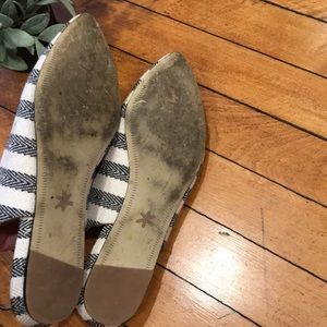 Super cute sling-back flats with stripes. They are a fabric/canvas material and are in very good used condition. No flaws. Rarely worn. Size says 7. I am usually a 7, and I think splendid shoes run small, so I am listing as 6.5.