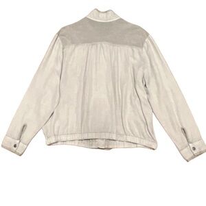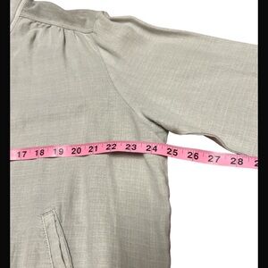 In excellent new like condition. The color is khaki/grayish. Love this jacket but it’s too big on me.