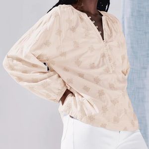 Beautiful top to wear either casual or dressy. Have never worn it but does not have tags. It’s too big on me although I love it. This Cheryl Top is fully lined and covered in all over embroidery. We love all the details like the neckline shirring and bracelet length sleeves that add a feminine softness to this structured piece, but our favorite feature is the swingy, relaxed silhouette.