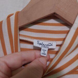 Splendid long-sleeve t-shirt womens XS tan & white stripes, mock-neck