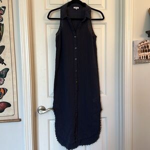 Splendid navy shirt style dress distressed hem XS button down midi