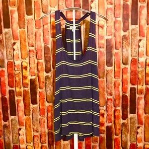 Splendid bright neon yellow and navy stripe pattern, racerback tank top