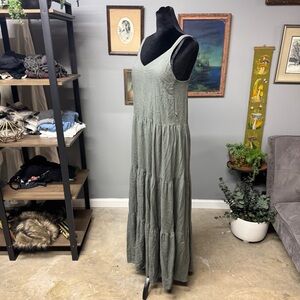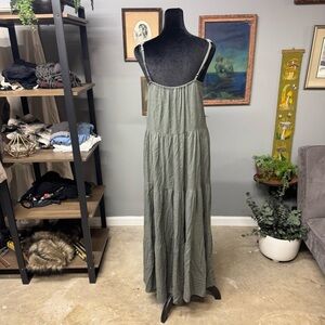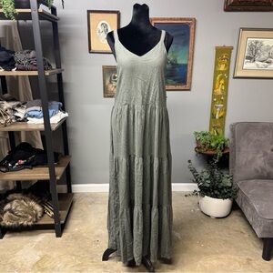 Splendid olive green tiered maxi dress linen blend women’s small summer classic