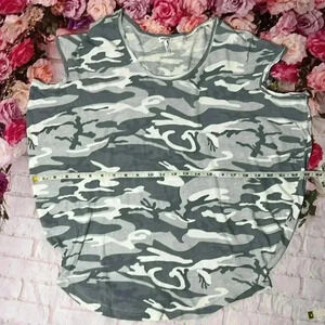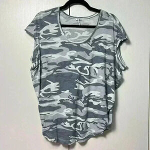 Splendid oversize sheer asymmetrical grey camo sleeves tee size XS/S