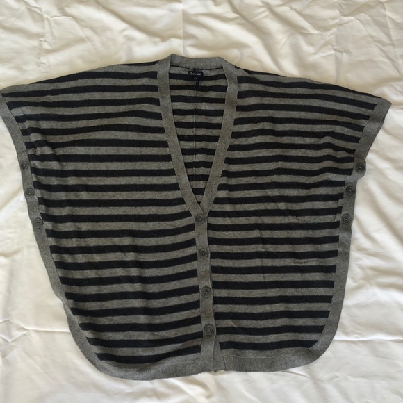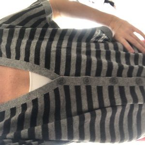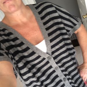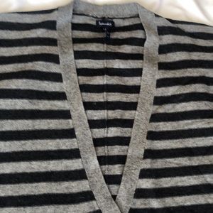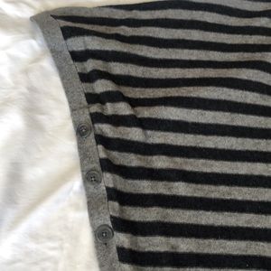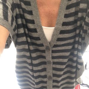 Like new gray and navy Splendid pullover sweater. Loose fit like an oversized cardigan but not too baggy. Adorned with front and side bottoms. Plunging V is super flattering.