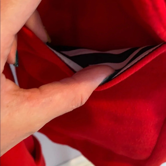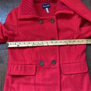 Splendid red coat size M. Gently used. Navy and white striped lining