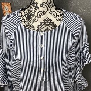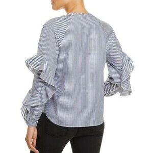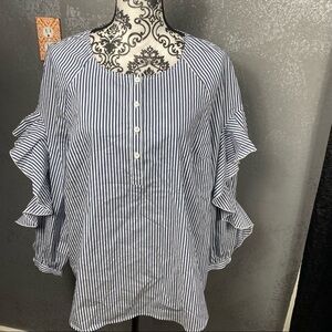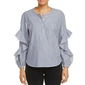 Splendid ruffled long sleeve striped 1/4 button navy white blouse.