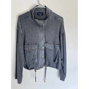 SPLENDID brand gray bomber jacket, excellent preowned condition. Has a draw-string waist with both zipper and snap closures. Has two front pockets.