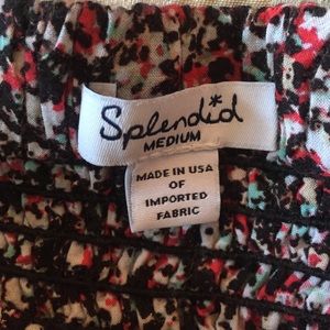 Cute summer skirt by Splendid! Excellent condition! Super soft. 2 layers. ~14.5 inches from top to hem. Fun pattern with black red green pink and white colors. Elastic waist band