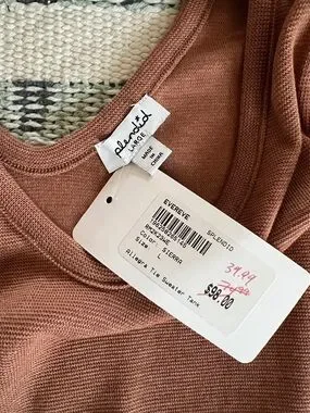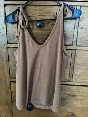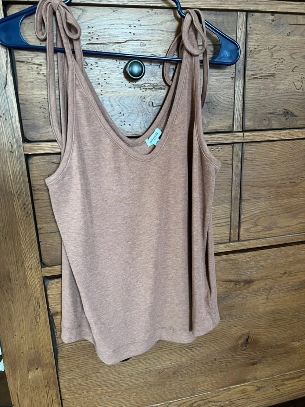 NWT- clay/rust color. 18” pit to pit- top of shoulder to hem 22”- straps tie so can adjust longer. Stretchy fabric. Last 2 pics show color.