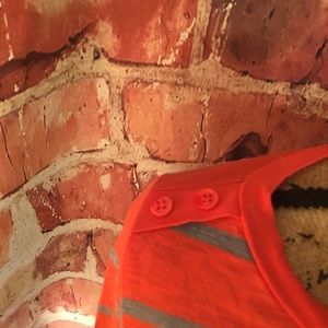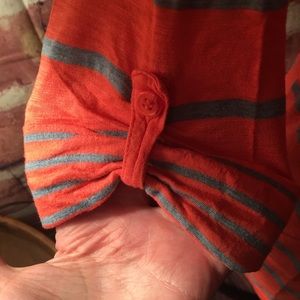 Tangerine and grey stip light cotton top. Button up 3-4 sleeve