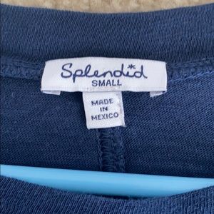 Women’s small splendid top. Navy blue with wide sleeves and like detailing down the middle in the front and back.