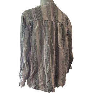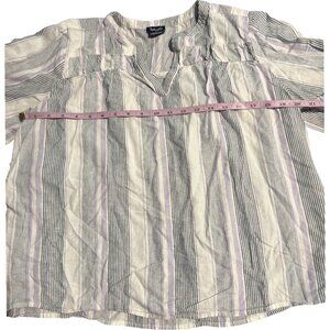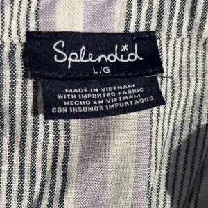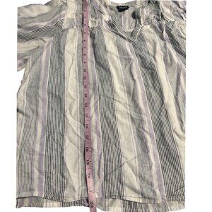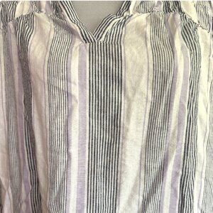 Splendid women's linen blend striped white purple v-neck blouse shirt sz L