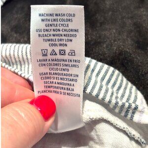This Splendid women's linen blend striped white purple v-neck blouse shirt in size L features a stylish v-neckline and long sleeves, perfect for casual occasions. Made with a rayon and linen fabric blend, this blouse is lightweight, breathable, and easy to care for, making it ideal for summer, fall, and spring seasons. The classic and colorful striped pattern gives a beachy feel to the top, which is a versatile addition to any woman's wardrobe. Made by Splendid, a trusted brand known for quality and style.