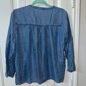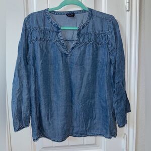 Splendid Blue Smocked 3/4 Sleeve Blouse