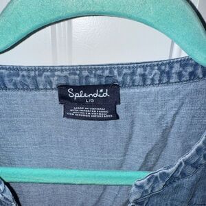 This relaxed blouse from Splendid features a beautiful blue hue and a smocked design, offering a comfortable fit. The 3/4 sleeves and mandarin collar add a touch of elegance, making it a versatile piece for any wardrobe. Perfect for both casual and semi-formal occasions, this top is a stylish addition to your collection.