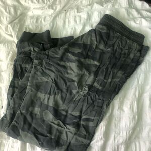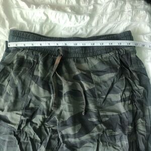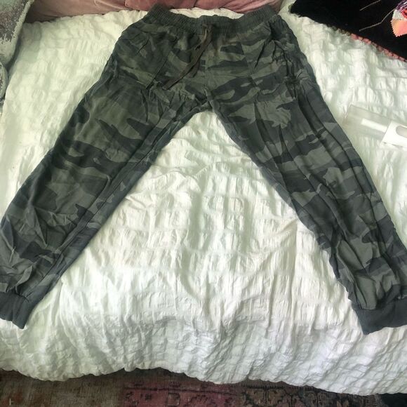 Camo joggers by splendid excellent condition… The Drawstring a slightly discolored in places not noticeable. See photos above for measurements. Very cute 100% rayon.