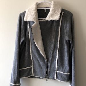 Splendid Fleece Zip Sweatshirt with Faux Sherpa trim size M Gray