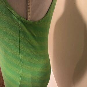 Gently worn with five buttons. Lime green long tank top striped tank top. Made of supima modal and supima. Shoulder to bottom hem almost 27”. Pet and smoke free home.