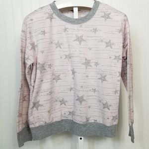 Gently used, no holes tears snags or stains. Splendid, light pink and gray star and stripe pattern. Crew neck, long sleeve.