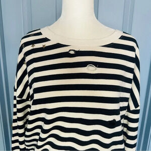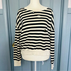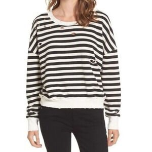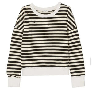 Splendid West Village Embellished Distressed Striped Cotton-Blend Sweatshirt